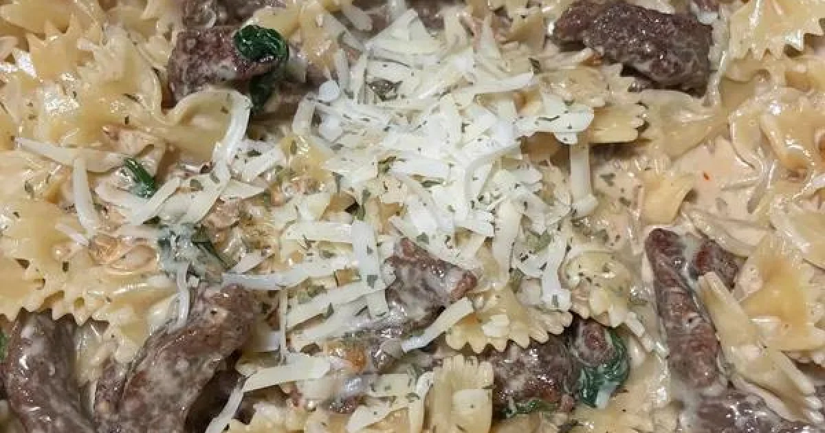 Pour in the beef broth, scraping up any browned bits from the skillet, then stir in the heavy cream and bring to a gentle simmer. Add the spinach and cook until just wilted. Stir in the Parmesan until the sauce thickens slightly, then return the steak and any juices to the pan. Add the cooked pasta and toss gently until everything is coated and heated through. Adjust seasoning with salt and pepper before serving.