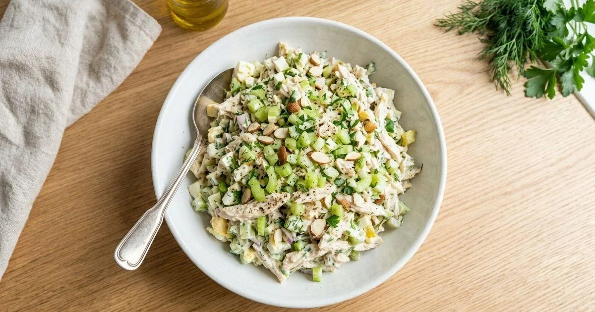 Stir until the chicken salad is creamy and evenly combined. Taste and adjust the seasoning if needed.