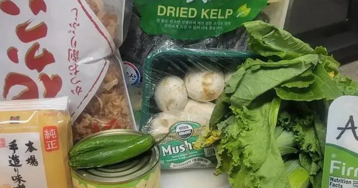 While the broth heats, soak the dried wakame in warm water for 5 minutes, or until softened. Drain and set aside.