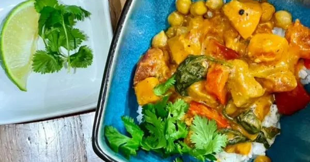 Serve the curry hot over rice and finish with chopped cilantro and a squeeze of lime, if desired.