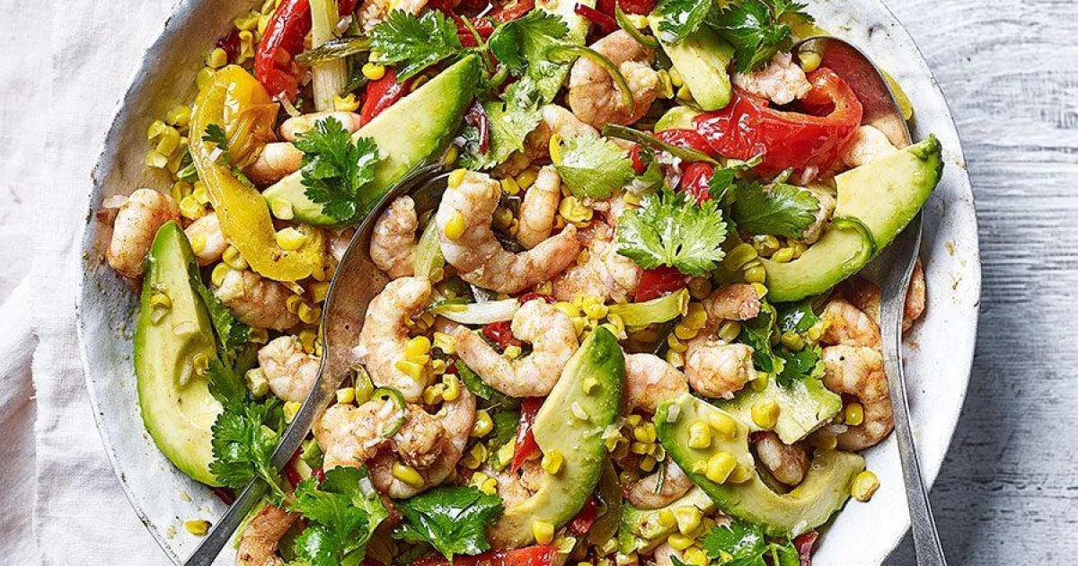 This vibrant prawn salad combines sweet roasted corn, smoky peppers, creamy avocado, and juicy pan-seared prawns for a fresh, satisfying meal. A zesty lime-chilli dressing ties everything together, making it ideal for a light dinner or impressive summer lunch.