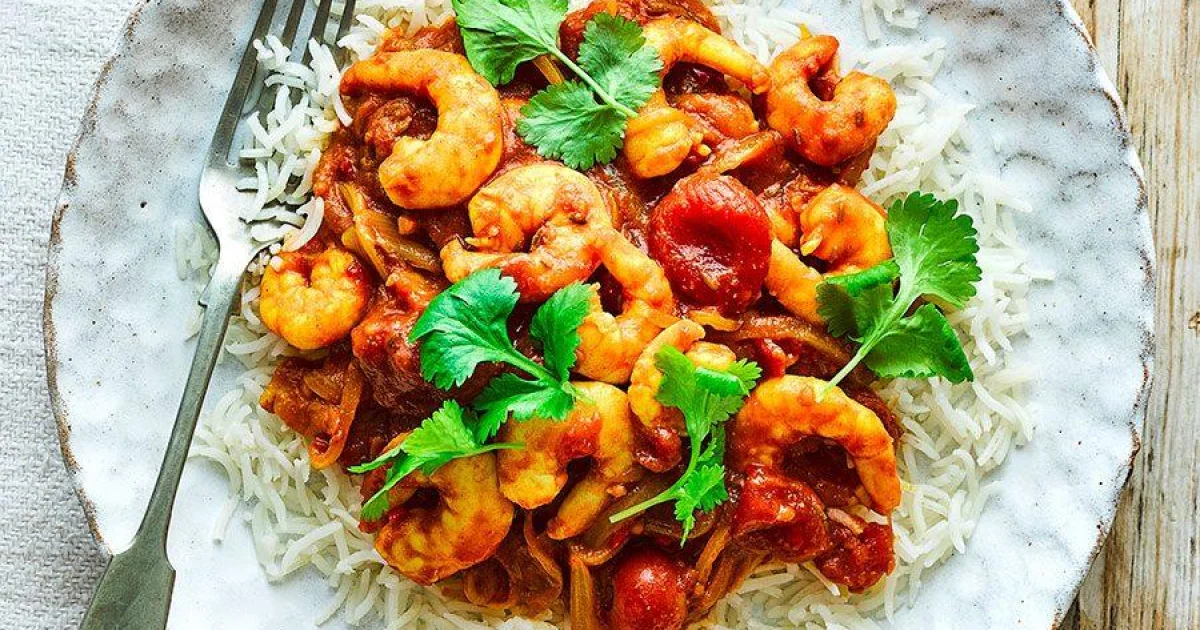 This tamarind prawn curry is bright, savory, and gently spicy, with juicy tomatoes and tender prawns in a richly spiced sauce. It comes together fast, making it a great weeknight dinner served over fluffy basmati rice.