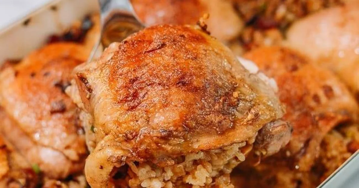 If the sticky rice seems too wet, let it cool longer before stuffing the chicken so the filling holds together better. Boneless skin-on chicken thighs work best because they wrap easily and stay juicy. Leftovers keep well in the refrigerator for up to 3 days and can be reheated in the oven for the best texture.