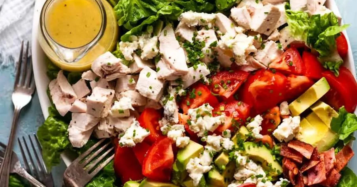 This classic Cobb salad is loaded with juicy chicken, crisp bacon, ripe avocado, tomatoes, eggs, and creamy blue cheese. Served with a tangy Dijon vinaigrette, it is a hearty, protein-packed salad that works for lunch, dinner, or easy entertaining.