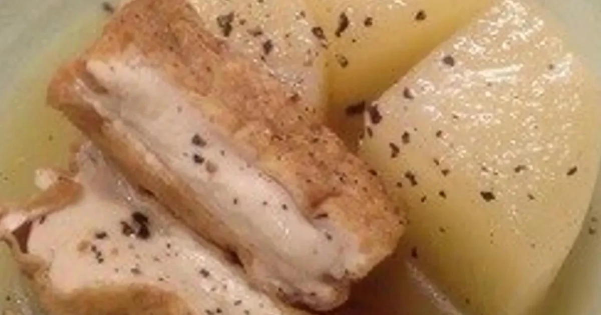 Add the atsuage and consomme granules. Season lightly with salt and pepper, then continue simmering for 5 to 10 minutes, or until the daikon is fully tender and the broth is flavorful.