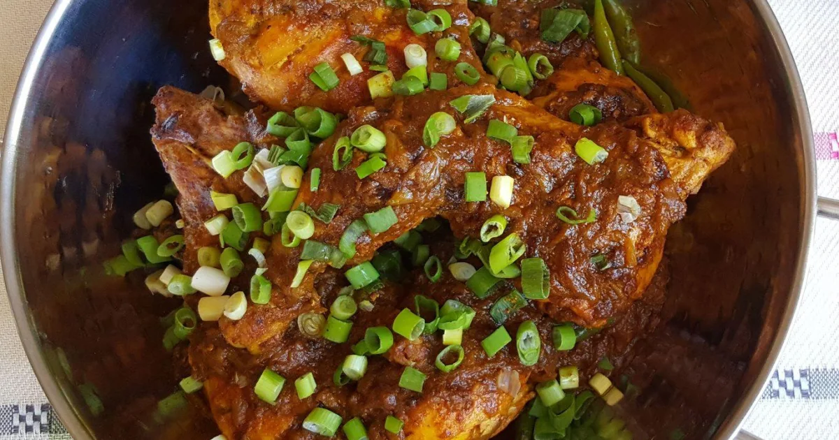 Bengali chicken roast is a richly spiced, pan-cooked chicken dish with a deep onion masala, warm whole spices, and a finishing touch of fresh green chilies and coriander. The yogurt marinade keeps the chicken tender, while slow cooking helps the sauce turn glossy and intensely flavorful.