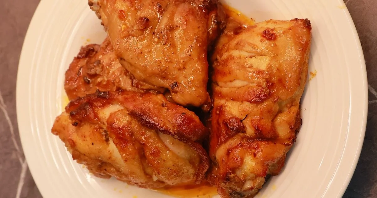 Làm nóng nồi chiên không dầu trước 5 phút. Xếp gà vào khay, nướng lần một ở 180°C trong 20 phút. Sau đó, lật mặt thịt và nướng thêm 15-20 phút nữa cho đến khi thịt chín mềm, lớp da vàng óng và dậy mùi thơm đặc trưng.